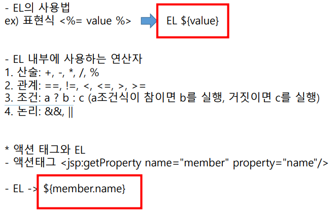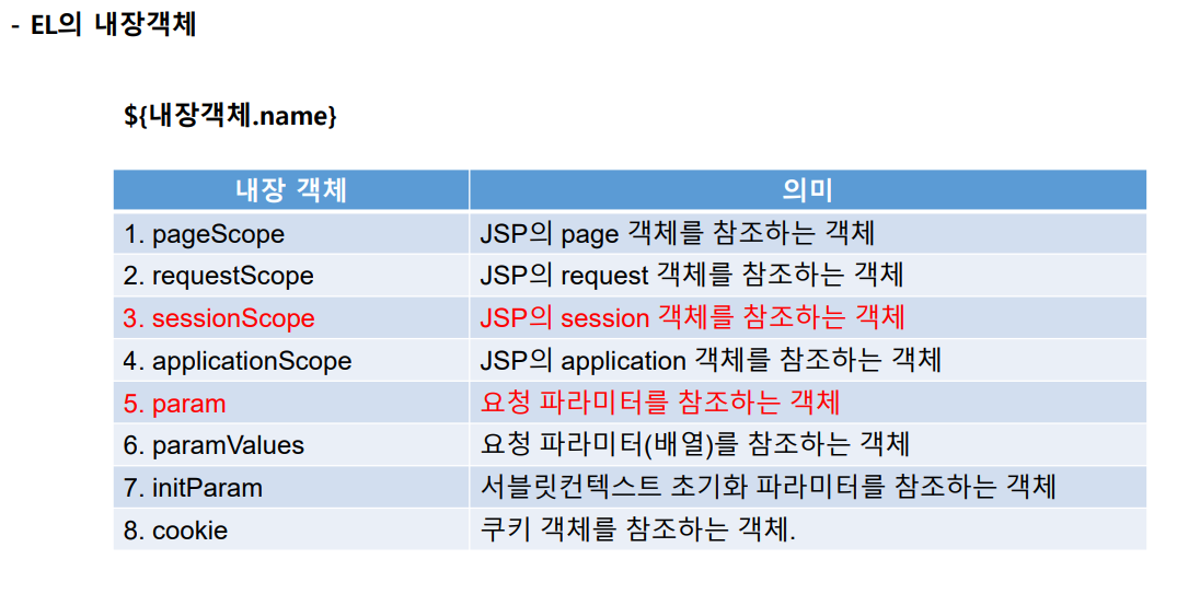 -EL이란 JSP에서 저장객체를 출력할때 스크립팅을 전혀 쓰지 않을 수 있는 기술입니다.