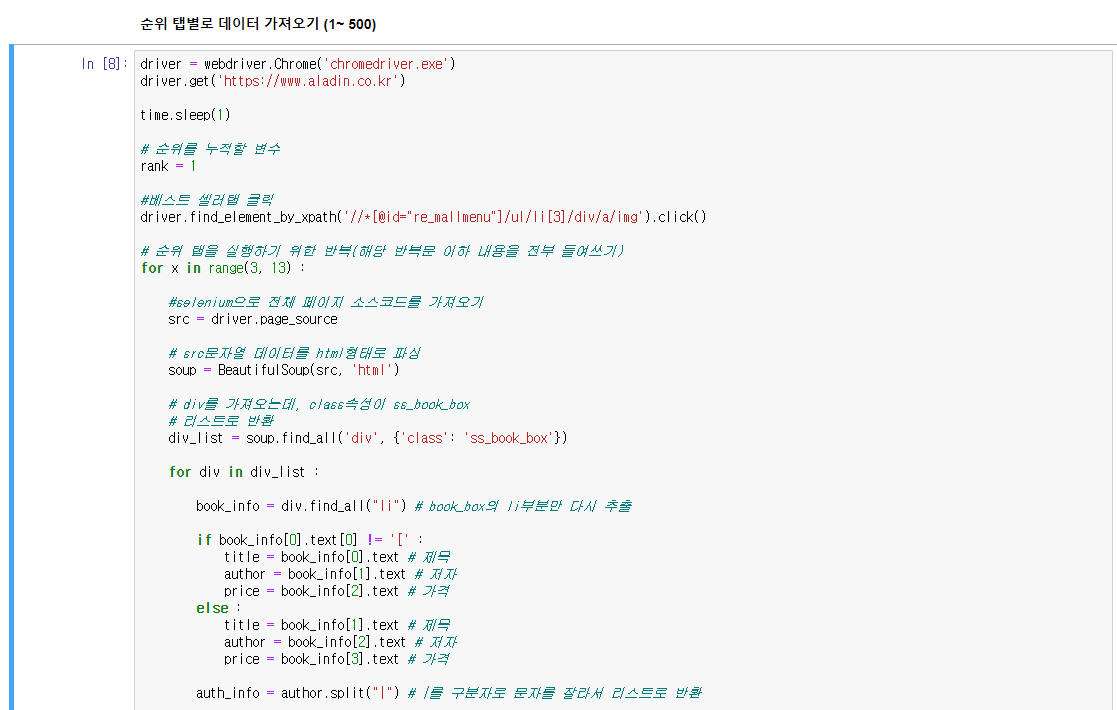 출력문은 필요가 없으니 엑셀에 내용을 적어줄 csv.writer를 활용하여 내용을 작성해준다