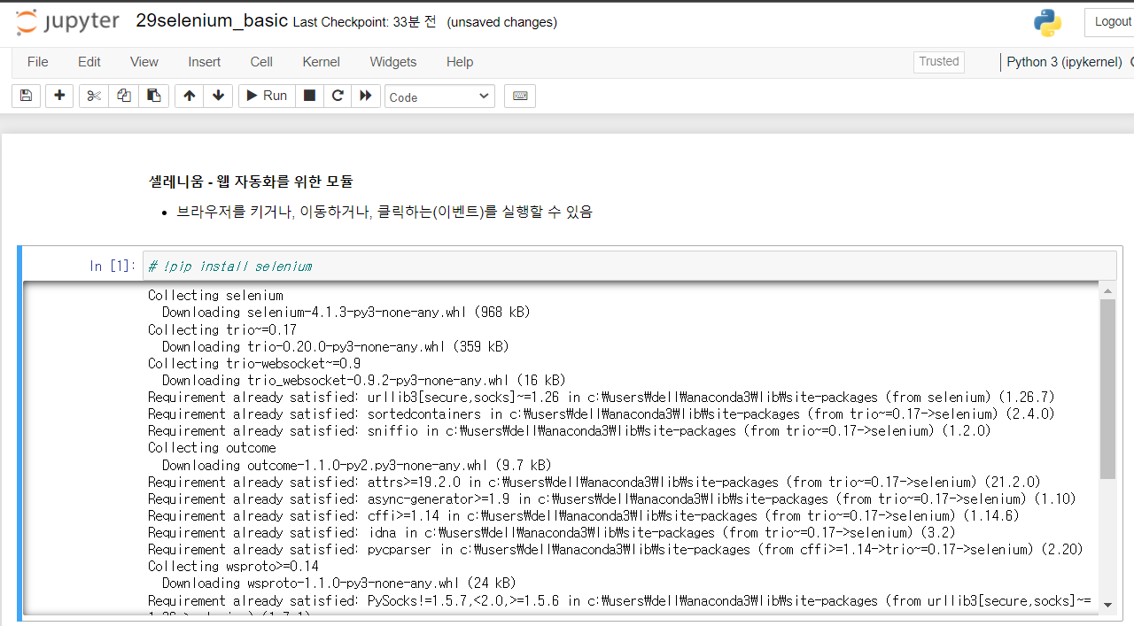 - cmd -> pip install selenium (셀레늄 라이브러리 다운로드)