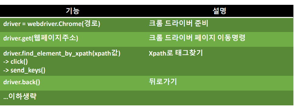 - 셀레니움: 웹 자동화 및 웹의 소스코드를 수집하는 모듈